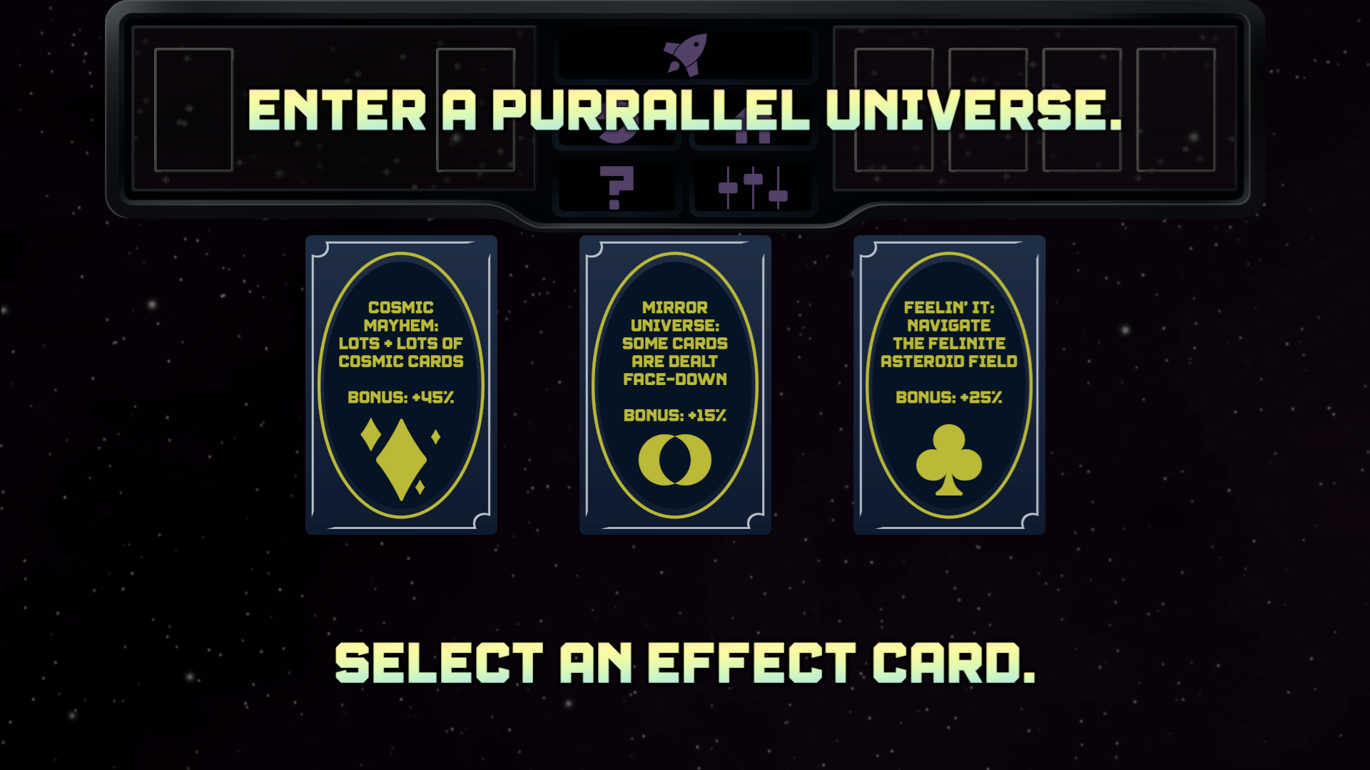 - "Purrallel Universe" mode: an introduction to Space Cat Solitaire's roguelike gameplay.